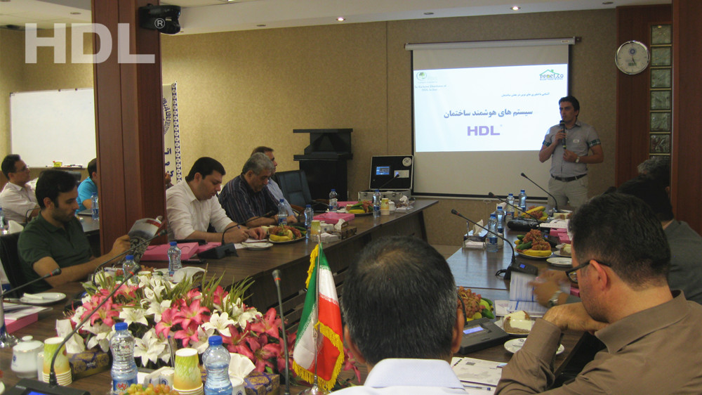 今年8月,HDL(伊朗)在伊朗的加兹温省(Qazvin)与当地大型的建筑企业举行了一场智能家居研讨会。这次会议由HDL(伊朗)在加兹温省的办事处与建筑商协会共同举办,一共有40名当地的建筑工程师和主要建筑企业的代表出席了研讨会。HDL(伊朗)销售经理Ehsan Rezazadeh先生向与会者介绍了HDL的智能家居系统和产品。